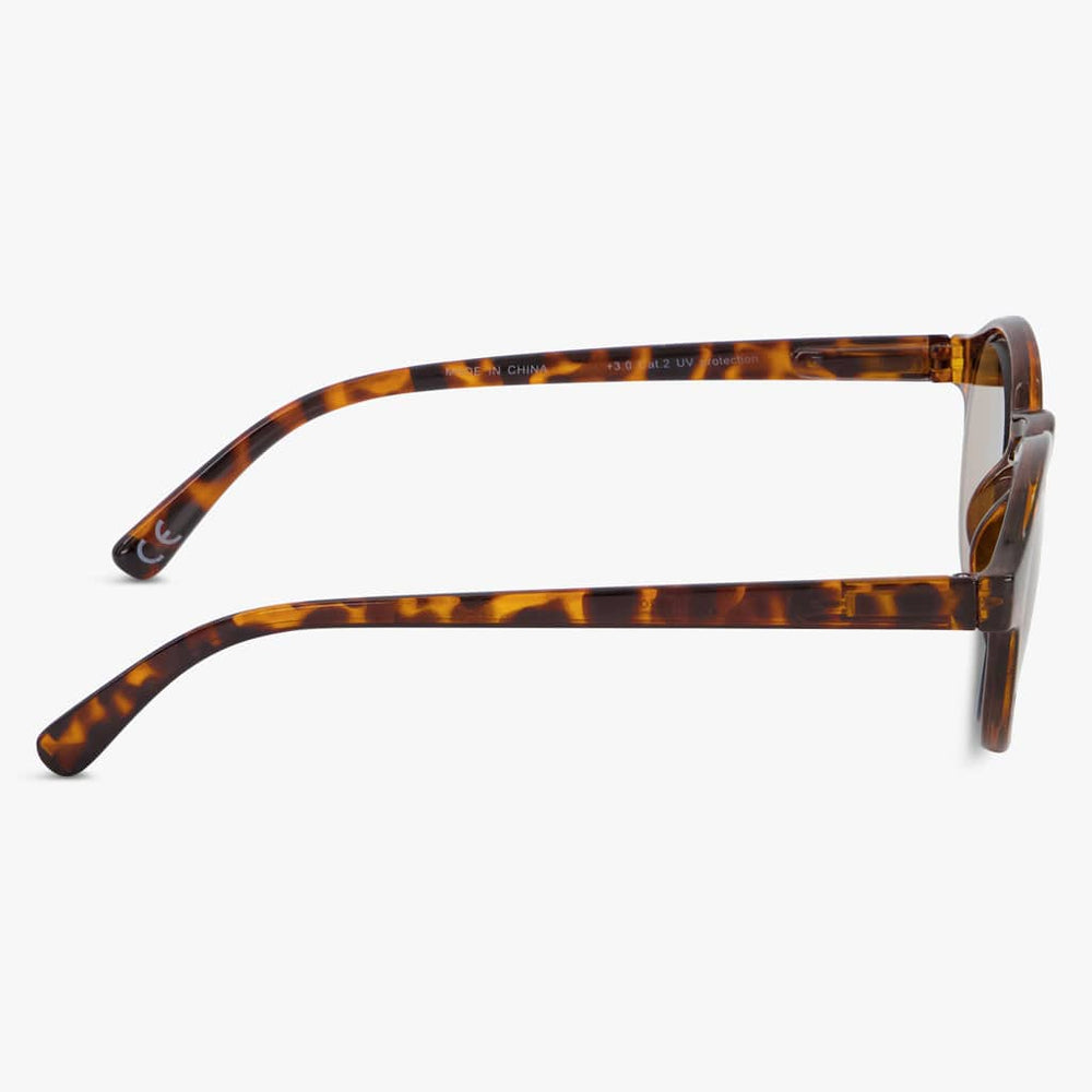 Meet the Shingle in Turtle Oak. This fashionable round frame reading sunglasses has a elegant shape which fits almost every face type. Made from 100% recycled plastic the Shingle is as sustainable as it is beautiful. The blue light filter protects your eyes from blue light emitted from screens and provide the perfect frame for reading in the sun. The Shingle glasses has a timeless design and quality build with flexible hinges and bendable legs.